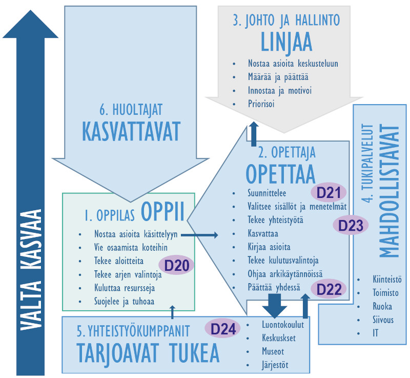 D23 Ammattiryhmädilemma. Opettajat pitävät ekologisen kestävyyden edistämistä tehtävänään, mutta jotkut kokevat joutuvansa huolehtimaan muille ammattiryhmille kuuluvista tehtävistä