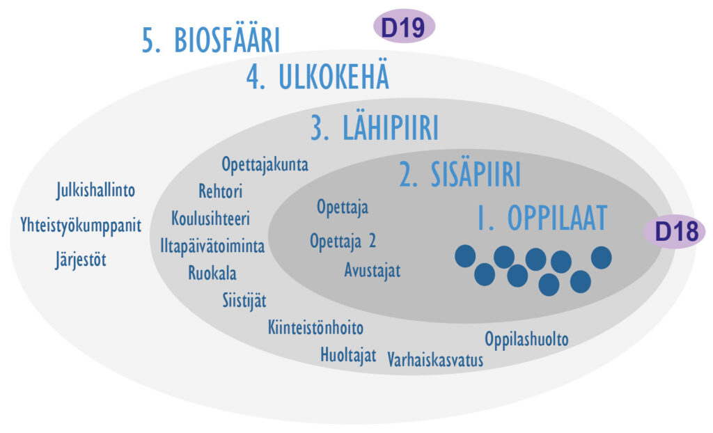 Opettajan lisäksi koko moniääninen yhteisö ja sen dynamiikka vaikuttavat ekologisen kestävyyden edistämiseen: opettaja ei työskentele koulussa yksin, vaan läsnä on koko yhteisö. Luokan sisällä, koulun sisällä ja koulun ulkopuolella on monenlaisia toimijoita, jotka vaikuttavat mahdollisuuksiin edistää ekologista kestävyyttä. Yhteisöön kuuluu myös koko biosfääri, jonka osana ihmiset toimivat. Luontosuhde onkin keskeinen asia ekologisen kestävyyden edistämisen kannalta.